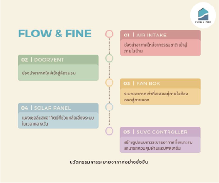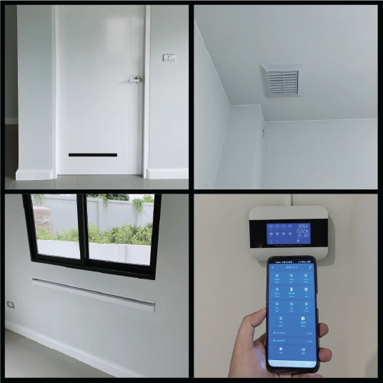 ระบบนี้ประกอบด้วยตัวควบคุมอัจฉริยะ ที่ทำงานร่วมกับ Fan Box ช่วยลดความร้อนใต้หลังคา และระบายอากาศผ่าน Door Vent กับ Air Intake เพื่อหมุนเวียนอากาศสะอาดจากภายนอกเข้ามาแทนที่ของเก่าในบ้าน